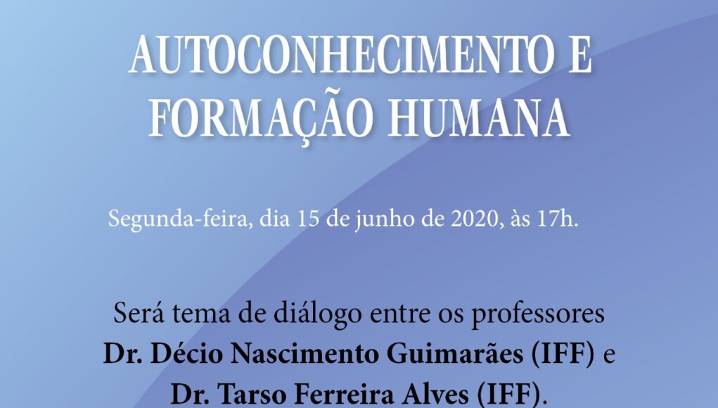 AUTOCONHECIMENTO E FORMAÇÃO HUMANA será tema de diálogo entre os professores Dr. Décio Nascimento Guimarães (IFF) e Dr. Tarso Ferreira Alves (IFF).
